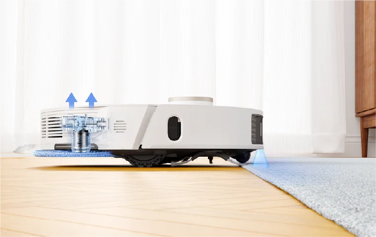 Удосконалена система ультразвукового виявлення килимів дає змогу пилососу L20 Ultra розпізнавати килимові покриття та повертатися на базову станцію, щоб від’єднати мийні насадки, якщо задано цей параметр, і зберігати килими сухими та чистими. Повертаючись до прибирання, інтелектуальне посилення всмоктування глибоко проникає в килими, щоб витягнути пил і сміття.