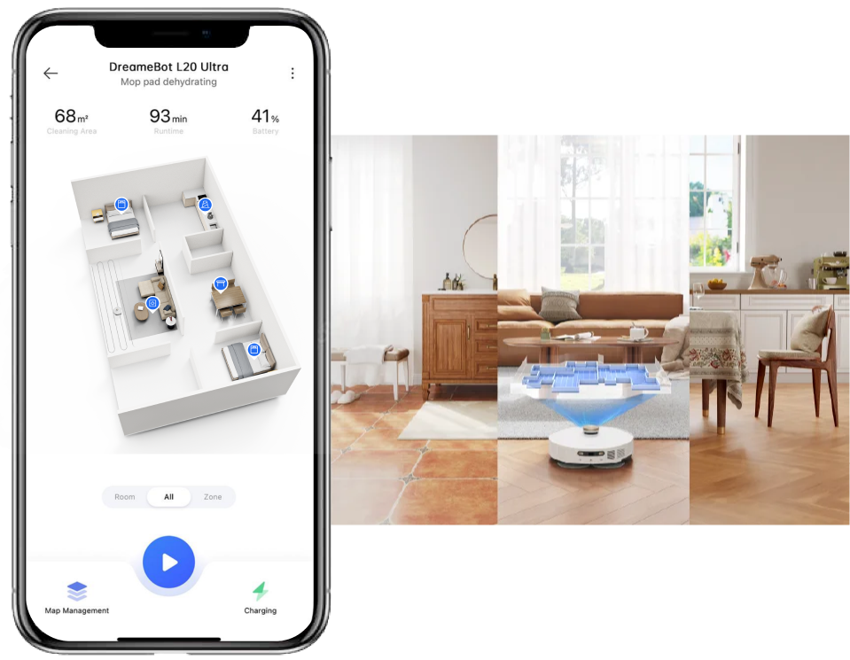 Завдяки інтелектуальним алгоритмам L20 Ultra може розпізнавати складні житлові середовища та визначати, коли, де і як найкраще розгортати та втягувати свої швабри.