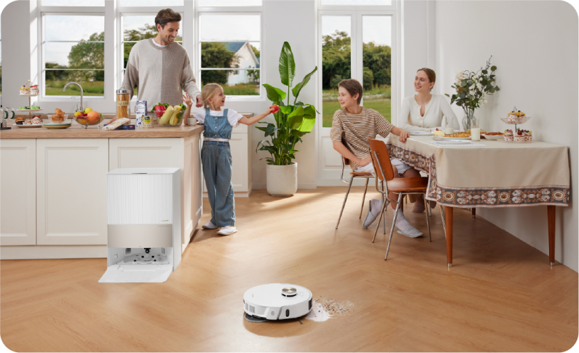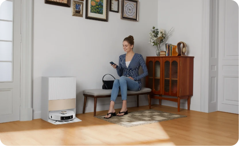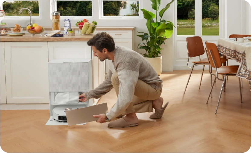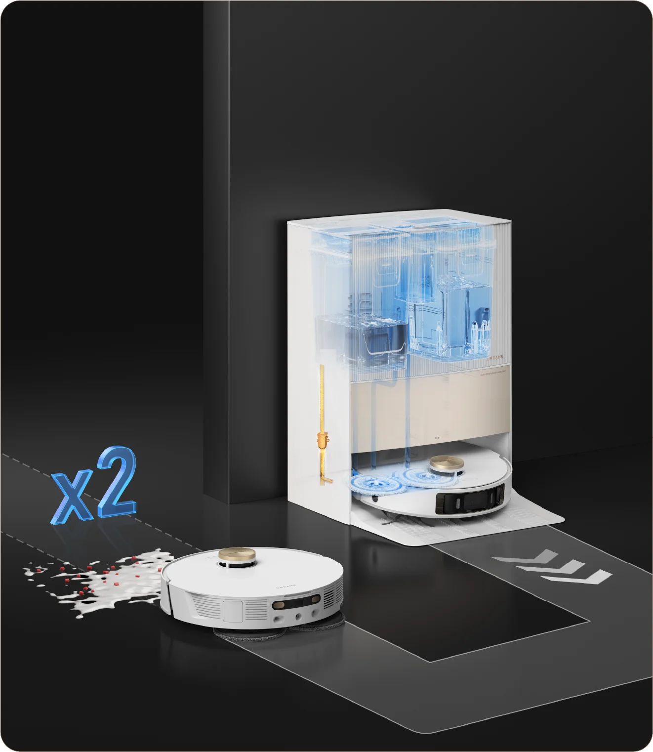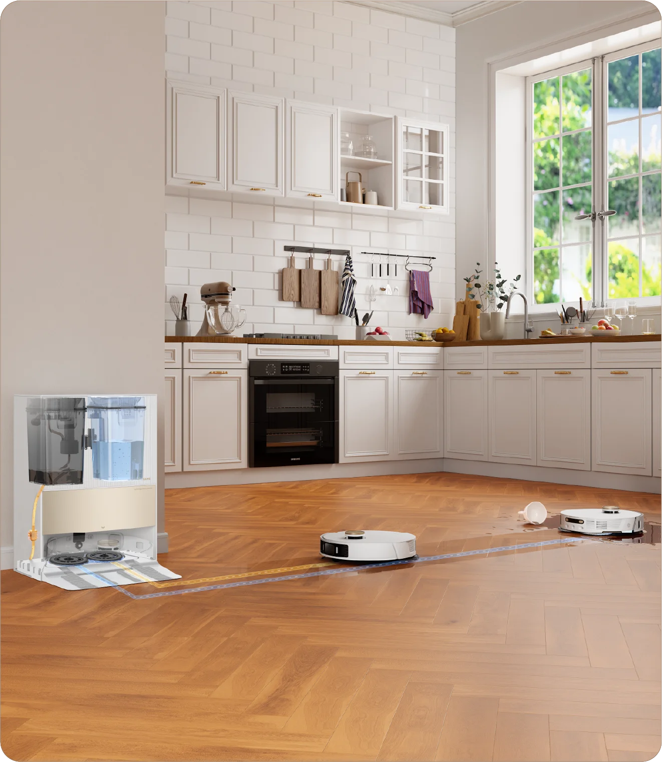 Автоматизуйте щоденне прибирання й повертайтеся додому до щойно прибраної оселі, де чудово пахне, а підлога приємна на дотик, завдяки повністю автоматизованій базовій станції. Підтримуйте свого робота в ідеальному стані за допомогою автоматичного спорожнення, миття мийної насадки, доливання води, додавання мийного розчину та іншого для мінімального втручання з вашого боку під час прибирання.