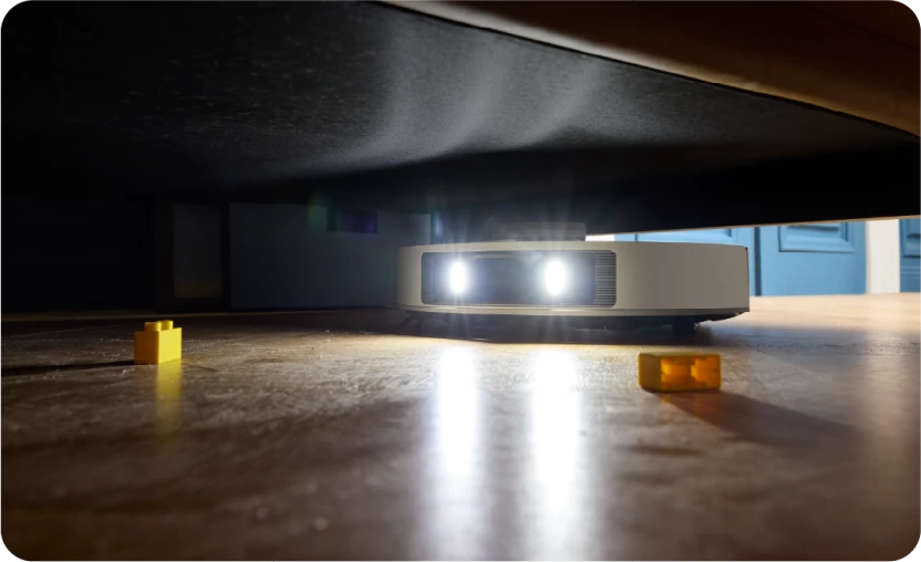 За допомогою інтегрованого світлодіода робот розпізнає перешкоди та ефективно прибирає у погано освітлених і темних приміщеннях.