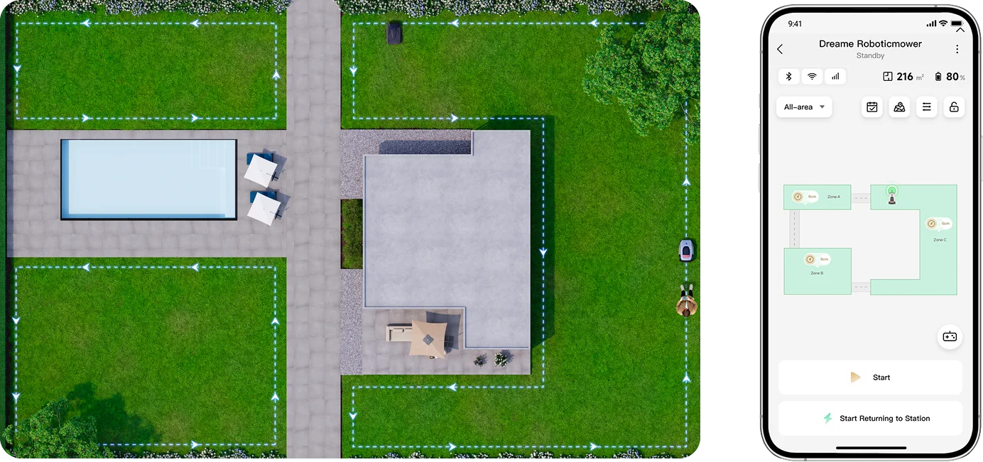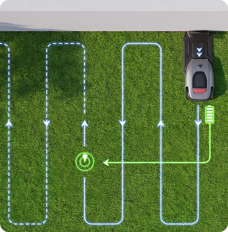 При виявленні дощу A1 автоматично повертається до зарядної станції та продовжує перерване косіння, коли дощ припиняється.