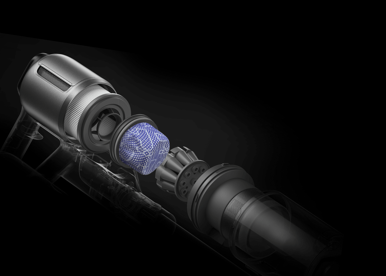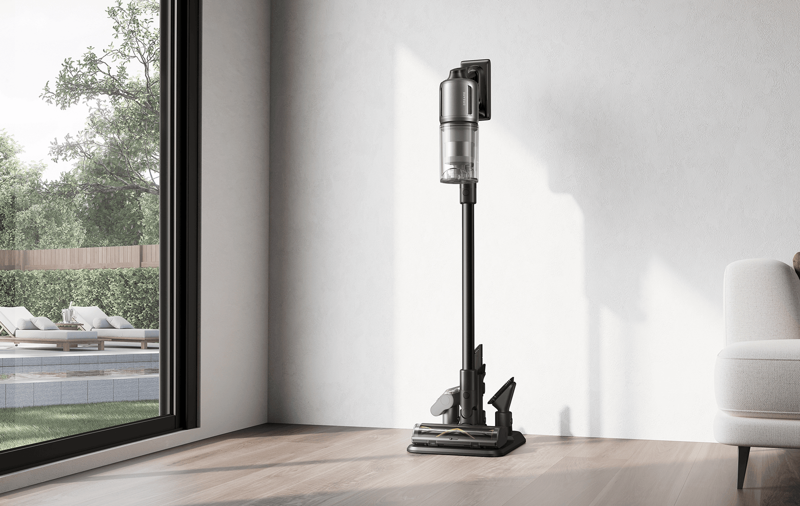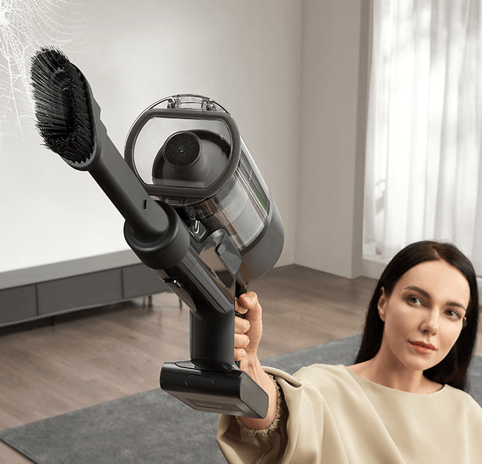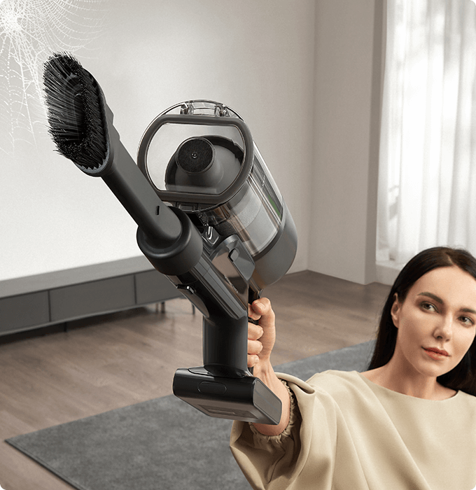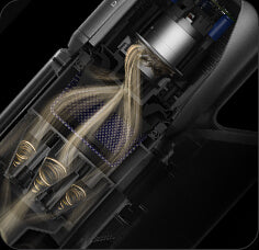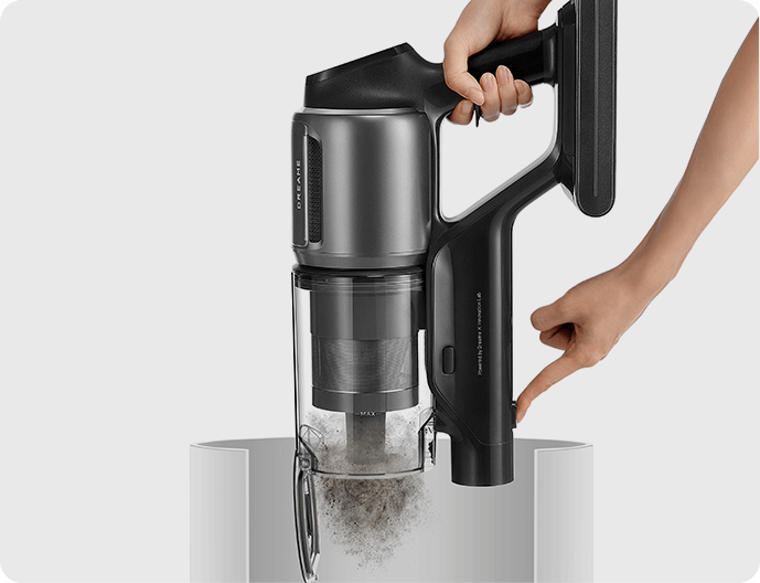 *310 аероват, 150 000 об/хв: на основі даних нашої лабораторії. Фактична продуктивність може відрізнятися. Потужність всмоктування у 310 аероват, що є найвищим показником у лінійці бездротових пилососів Dreame станом на травень 2024 року.