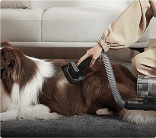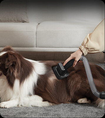 *Перед тим, як почати збирати шерсть пилососом після розчісування, рекомендується притримати вашого улюбленця на безпечній відстані від працюючого пилососа або дати домашній тварині час звикнути до звуків усмоктування.
